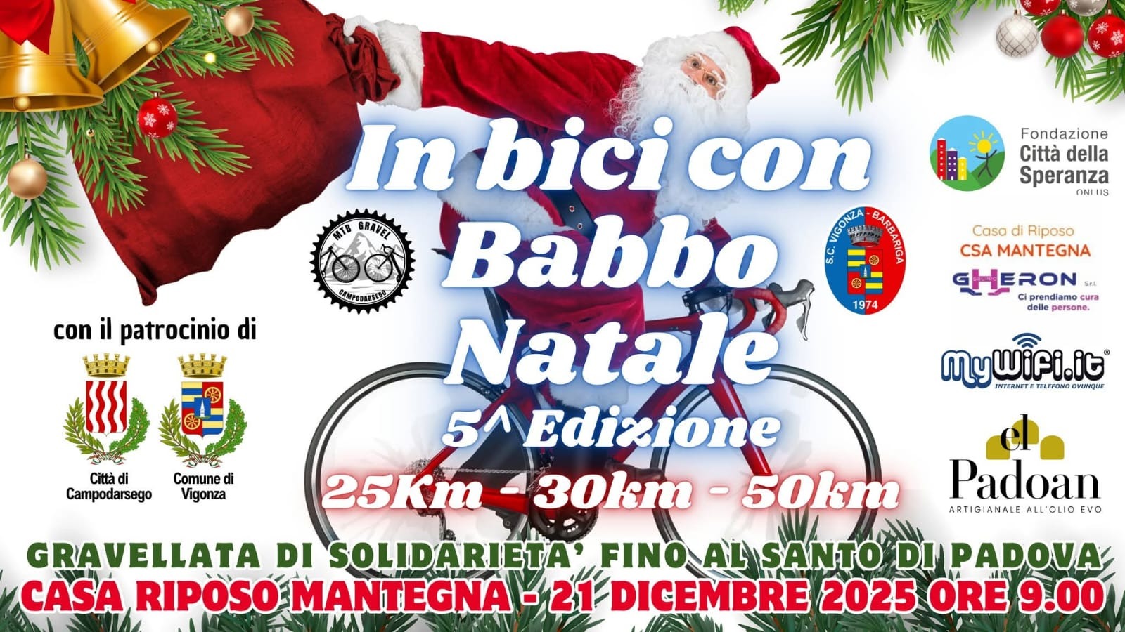 L’ASD Vigonza Bargariga vi invita a una pedalata natalizia dal grande valore umano: il ricavato dell’evento sarà interamente devoluto alla Fondazione Città della Speranza, per sostenere la ricerca e regalare futuro a chi ne ha più bisogno
