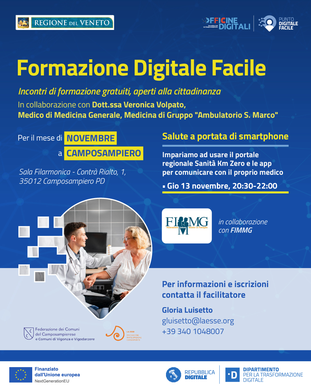 Per maggiori informazioni e per iscriverti, contatta la facilitatrice digitale: Gloria Luisetto +39 340 104 8007 - gluisetto@laesse.org