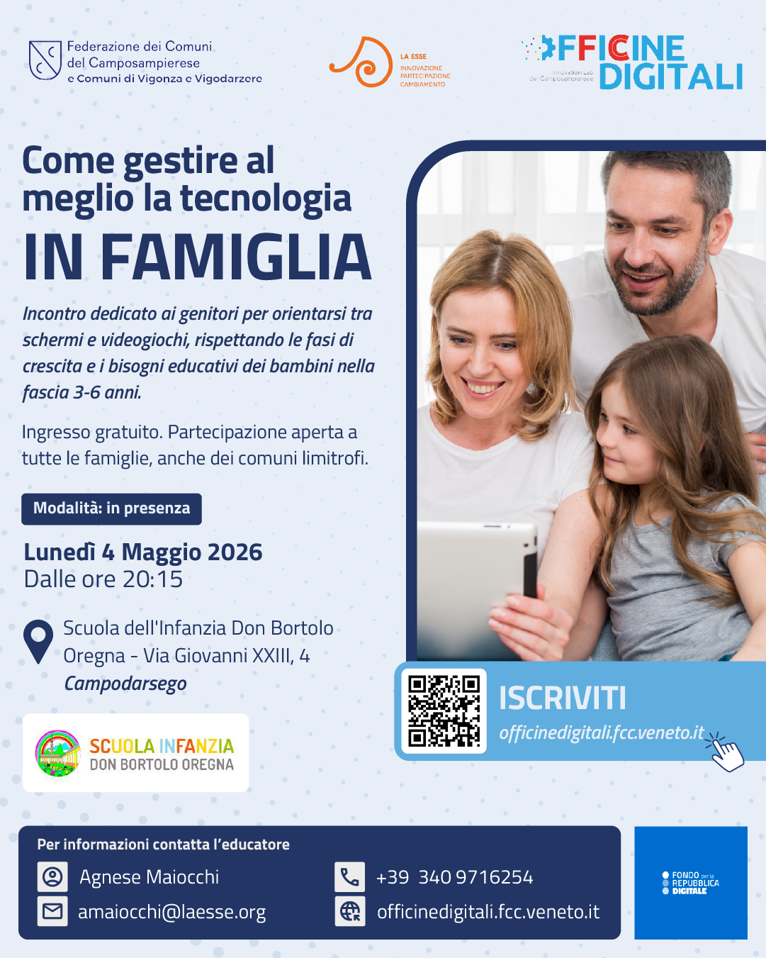 Durante l’incontro verrà approfondito l’uso degli strumenti digitali in relazione alle diverse fasi di sviluppo dei bambini, con particolare attenzione al rispetto dei loro bisogni evolutivi. Sarà inoltre un’occasione di confronto tra genitori sulle scelte educative, per condividere dubbi, esperienze e strategie.